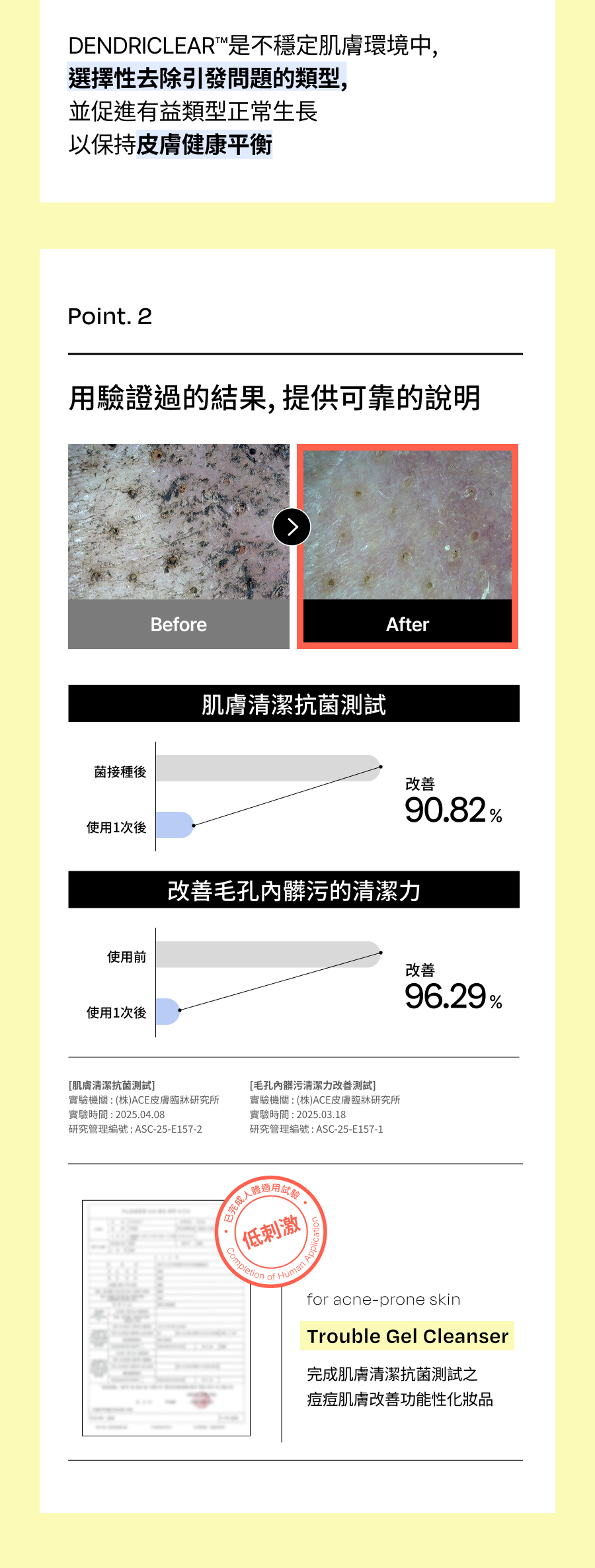 ✅完成痤瘡丙酸桿菌減少99.9%測試
